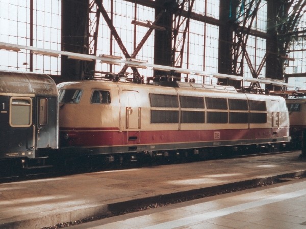Zusammen mit der 103 113-7 steht die letztgebaute 103 245-7 mit einem Sonderzug im Oktober 2001 abfahrbereit in Frankfurt/Main Hbf.