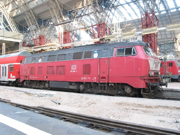 Frankfurt/Main Hbf anzutreffen. Im Hintergrund ist das fast fertiggestellte Hallendach auf der Nordseite des Bahnhofes zu erkennen.
